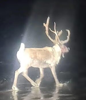 Os policiais rastrearam a rena com seus enormes chifres antes de perdê-la de vista à noite.
