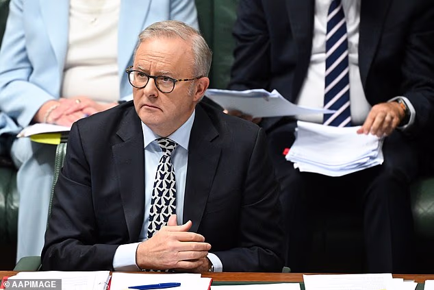 O editor político do Daily Mail, Peter van Onselen, escreveu: “Tornámo-nos uma nação em declínio e continuaremos a fazê-lo – a menos que as coisas mudem, e rapidamente”. (Acima: Anthony Albanese em 9 de fevereiro)