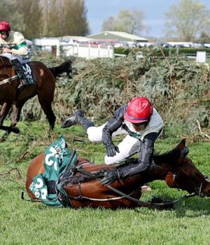 Mas seu cavalo cometeu um erro na 25ª barreira, Valentine, e rapidamente caiu para trás no campo – um sinal de que algo estava errado. Mas os dois continuaram, apenas para o cavalo cair na última cerca.