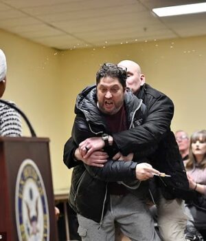 O manifestante correu em direção a Omar e pulverizou-o com uma substância misteriosa de uma seringa. Ele então pediu a Omar que renunciasse e alegou que estava “roubando Minnesota” antes de ser arrastado por seguranças.