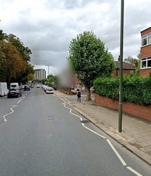 Após uma perseguição policial, um SUV preto transportando três pessoas bateu em Ballards Lane (foto).