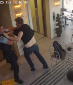 A dupla estava envolvida em uma luta livre e terminou no chão, onde o homem reclamou que gostaria de ‘matar’ o oficial.