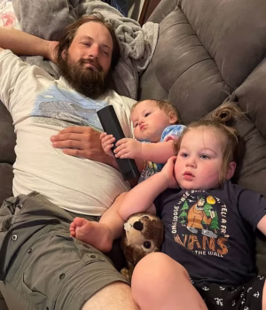 Philip Pohle, 32 anos (foto com seus dois filhos), foi decapitado internamente enquanto derrubava árvores em um parque de Ohio.