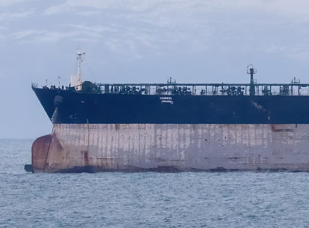 O navio-tanque, que foi apreendido na semana passada em uma operação liderada pelos EUA no Atlântico Norte, estava atracado a três milhas da costa, perto de um porto de águas profundas, e foi avistado ao largo de Burghhead, perto de Lossiemouth, na costa de Moray, na antiga base naval do Mariner, em Invergordon.