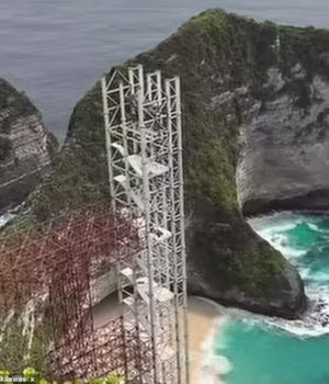 A construção de um elevador de vidro gigante na praia de Kelingking, em Nusa Penida, provocou uma reação negativa dos moradores locais, que afirmam que o local tem prejudicado a beleza natural do local.