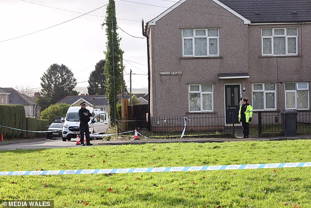 Polícia no local em Wheatley Place, na área da Floresta Cefnon de Blackwood, Gwent hoje