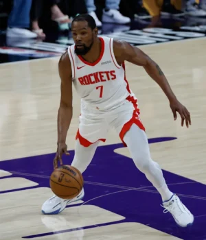 Durant teve média de 26 pontos, 5,5 rebotes e 4,8 assistências nesta temporada, sua primeira com os Rockets. O jogador de 37 anos assinou um grande contrato com Houston no verão passado e depois assinou uma extensão de dois anos no valor de US$ 90 milhões.