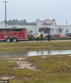 Uma mulher não identificada estava dirigindo no desvio da rodovia 17 quando seu carro caiu em uma poça durante uma tempestade em Myrtle Beach na terça-feira, por volta das 14h45.