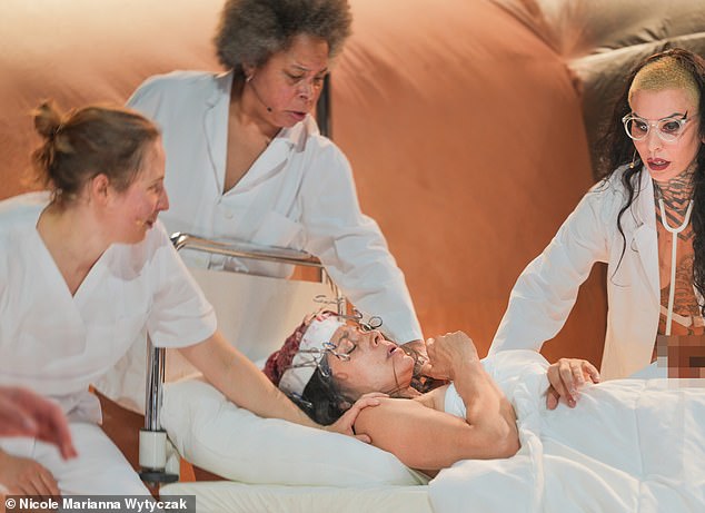 A certa altura, um coreógrafo foi visto costurando de uma ferida fresca na perna, da qual uma pequena estátua de bebê foi desenhada – ‘o nascimento de uma música’.