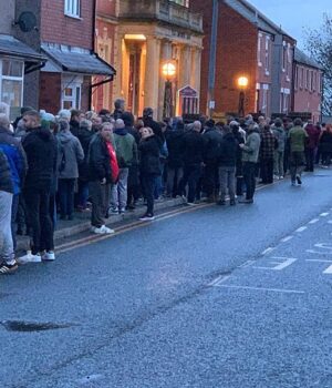 Tantas pessoas queriam participar da reunião pública no Hafford Colliery Club que ela acabou sendo transferida para fora