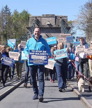 Na quinta-feira, Russell Findlay intensificou o seu apelo aos eleitores para impedirem uma maioria do SNP e outro referendo de independência ao visitar a Union Bridge, na fronteira entre a Escócia e a Inglaterra, perto de Fishwick, como parte de uma visita aos círculos eleitorais da “parede azul”.
