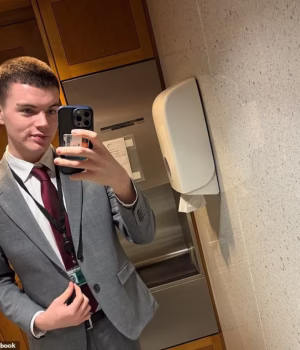 ‘Sionista não-judeu’ Brodie Mitchell, 20, (foto) foi repreendido pela Royal Holloway, Universidade de Londres, por comparar o lenço keffiyeh de Huda El-Jamal a um pano de prato