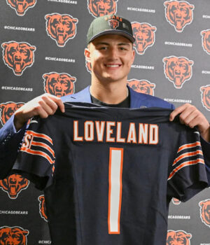 6 -E -POT -6 LOVLAND dá aos Bears um conjunto potencialmente poderoso de carvão. Ele criou um recorde escolar para um final apertado, com 56 recepções para cinco touchdowns como júnior na última temporada. Ele foi o concorrente final do segundo time All-Big Ten e John McKie Award concedido ao topo do futebol universitário. Ele foi o primeiro time em toda a conferência durante a temporada do campeonato nacional de 2021, quando recebeu 45 jardas e quatro passes para quatro TDs.