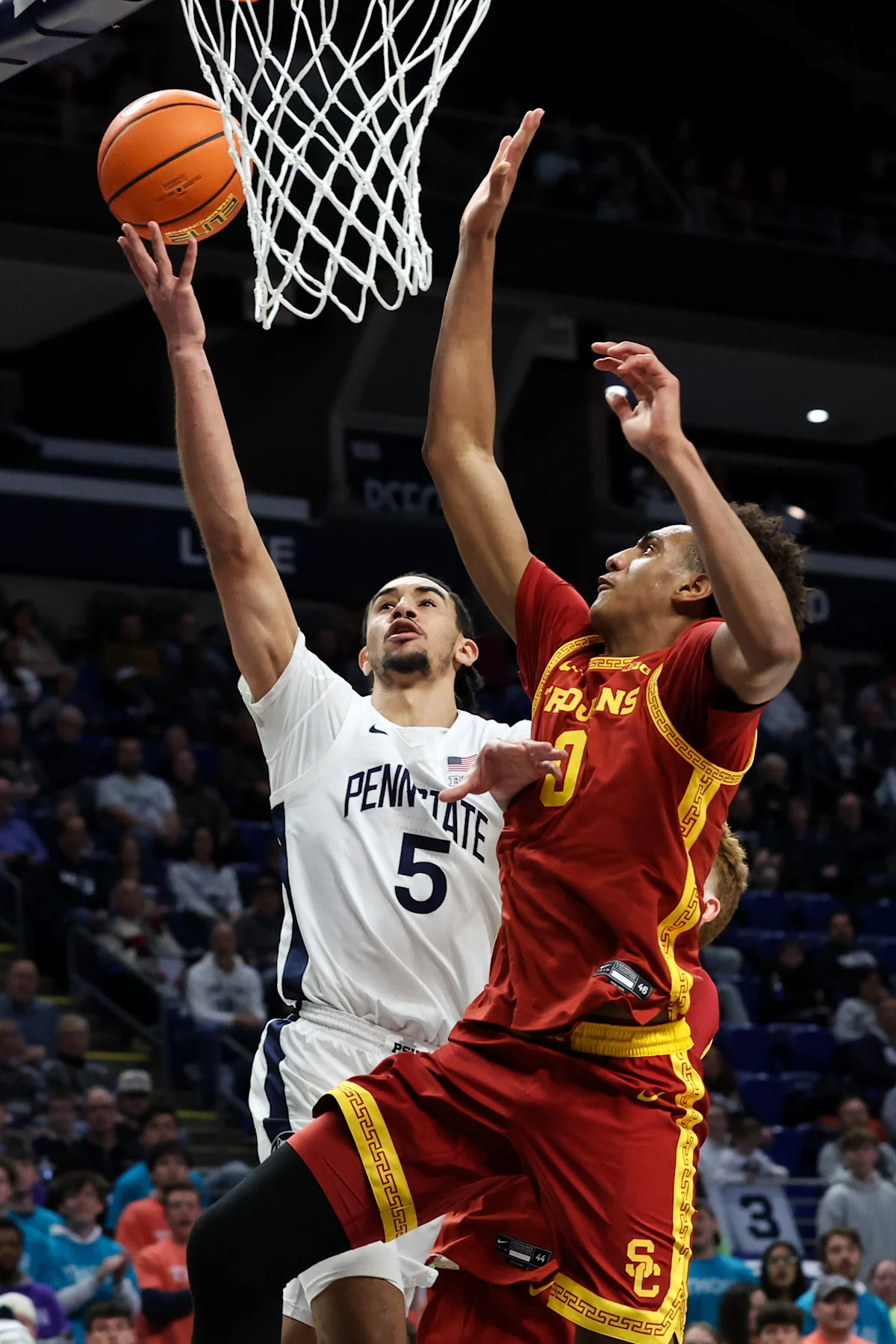 Com o USC mantendo uma vantagem de quatro pontos após um tempo limite na Penn State, os Leões fecharam o intervalo em uma sequência de 12-4, coroada por bandejas consecutivas de Josh Reed para assumir uma vantagem de 40-36 no intervalo.