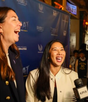 Enquanto isso, ele foi flanqueado no tapete vermelho do Grand Lake Theatre pela presidente do Valkyries, Jess Smith, que expressou otimismo de que um novo CBA seria acordado a tempo para a temporada, que começa em maio.