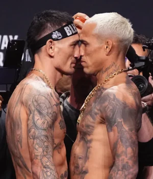 Holloway e Oliveira se encontraram pela última vez antes do UFC 326, na pesagem oficial na noite de sexta-feira, e enquanto os dois homens mantinham as coisas profissionais, os dois competidores do BMF ficaram cara a cara no confronto final, forçando o matchmaker do UFC Sean Shelby a separá-los.