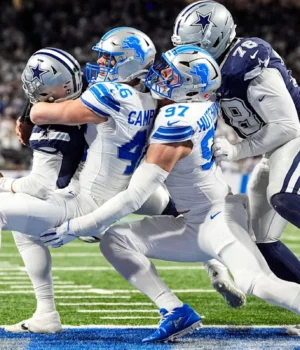 Na quinta-feira, contra um dos ataques com maior pontuação da NFL, Campbell, o linebacker intermediário do terceiro ano do Lions, liderou um ressurgimento defensivo. Correndo em uma blitz pelo A-gap, ele enterrou Dak Prescott por uma derrota de 11 jardas na end zone dos Cowboys no primeiro quarto. A princípio, parecia que Campbell causou uma segurança. Mas uma análise de replay indicou que Prescott havia puxado a bola Fora da linha do gol. Ainda assim, o sack de Campbell rendeu dividendos, forçando um chute da linha de 1 jarda e virando a posição de campo a favor de Detroit. Os Leões começaram sua próxima investida na linha de jardas-42 de Dallas. Gibbs marcou após seis jogadas.