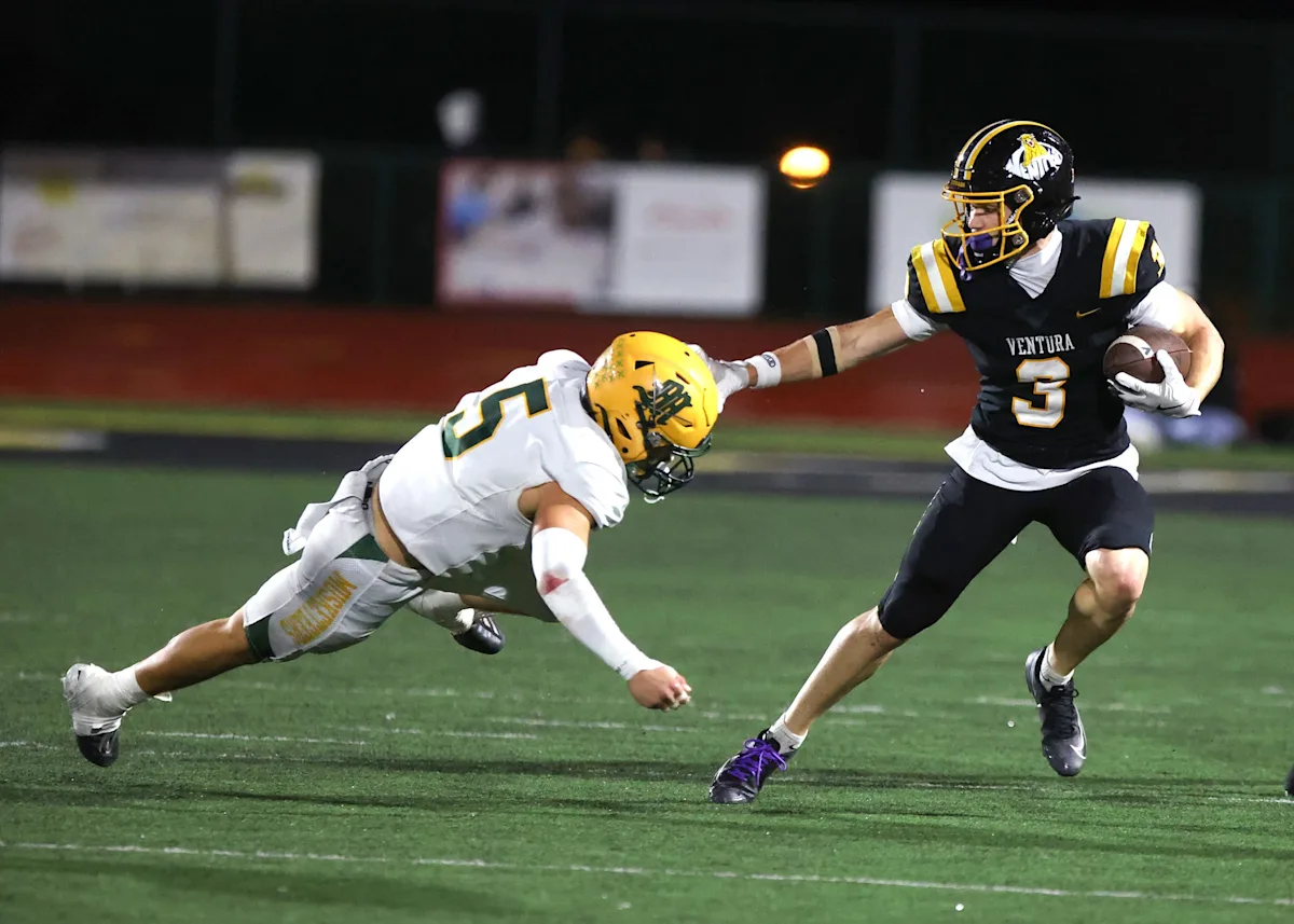 O chute de 18 jardas de Derek Garcia para Savage provou ser o placar decisivo, já que o quarterback sênior passou pelo trânsito até seu gol para dar a Ventura uma vantagem de 35-28.