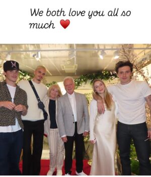 Em uma doce imagem em preto e branco, mostra que Victoria estava associada aos quatro filhos, com sua filha Harper agora recebeu quatro e compartilhou seu filho Romeo (22) e Cruise.