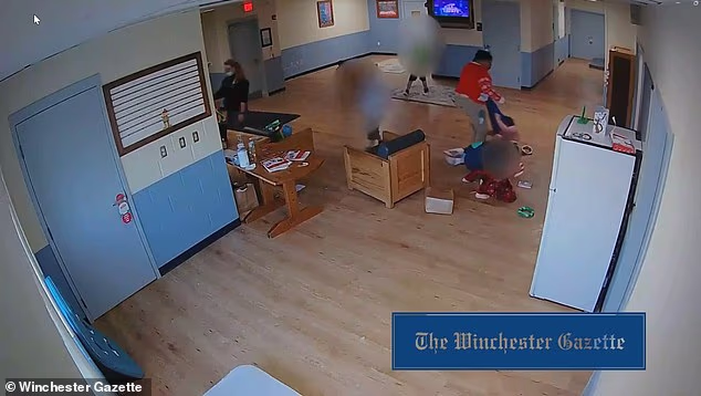 Na frente de outros residentes, incluindo seus colegas, ele agarrou agressivamente a criança pela camisa e arrastou-a vários metros pela sala.