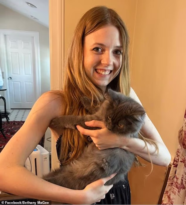 Bethany Magee, uma jovem de 26 anos que teve gasolina derramada sobre ela e incendiada por um criminoso enlouquecido