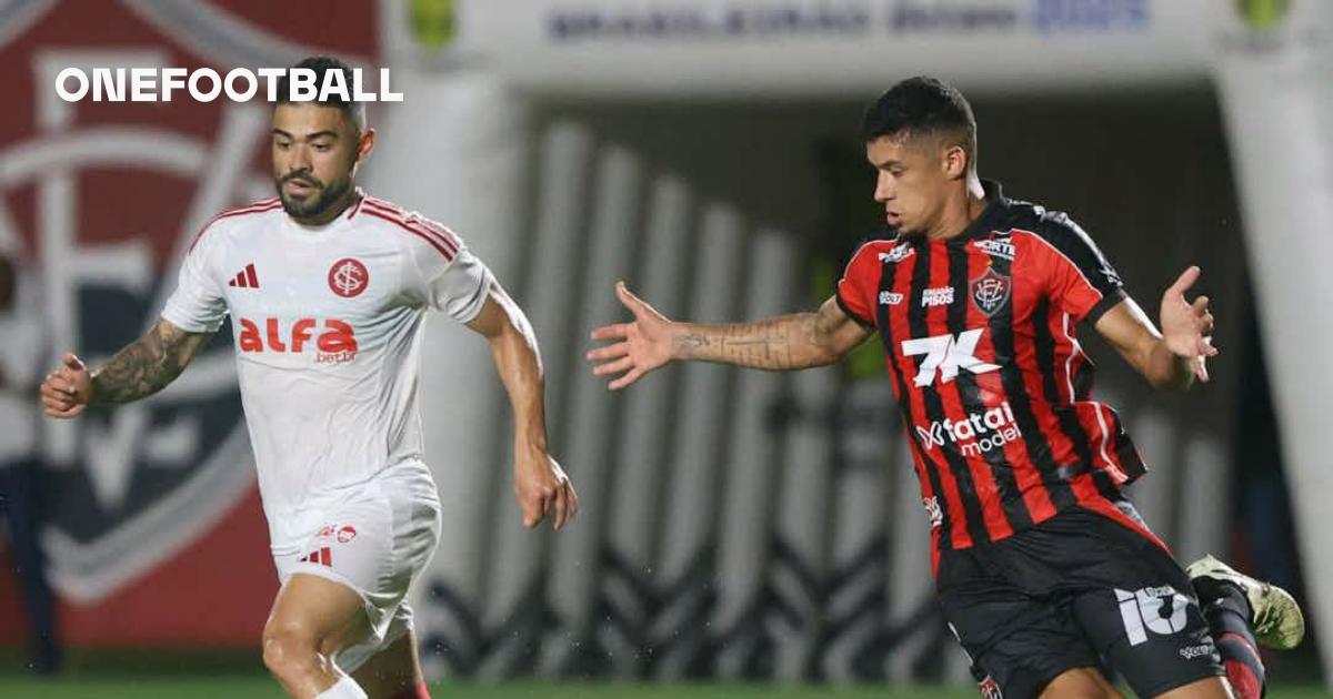 Antes do gol de Lucas Halter, o Vitória já havia balançado a rede contra o Internacional… mas a bola estourou a rede.