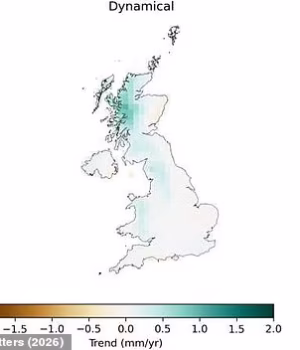 A sua análise confirmou que os invernos no Reino Unido estão a ficar mais húmidos à medida que o aquecimento global continua.