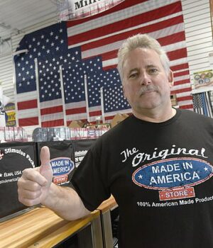 A loja Made in America (ilustrada), com sede em Buffalo, com cautela em suas prateleiras para garantir que cada produto tenha sido totalmente produzido nos Estados Unidos.