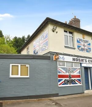 Mas o mais interessante fica no térreo – que abriga uma tradicional loja de chips chamada Nosh’s Chippy, completa com área de loja e duas salas de preparação.