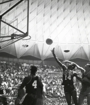 O grupo incluía nomes que a maioria de nós não reconheceria, como Jay Arnett, Burdette Halldorson e Lester Lane. Eles chegaram à equipe por meio de equipes da AAU, e por equipes da AAU, queremos dizer equipes da AAU adultas e antigas, não nossos sistemas agrícolas adolescentes de hoje.