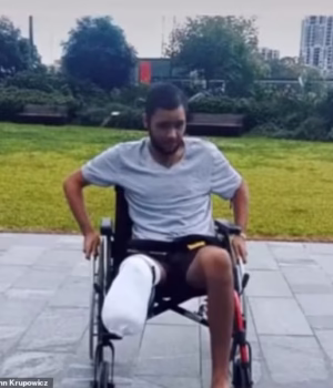 Como resultado da colisão, Krupowicz sofreu uma fratura exposta na perna direita, o que surpreendentemente levou à amputação da perna direita abaixo do joelho.
